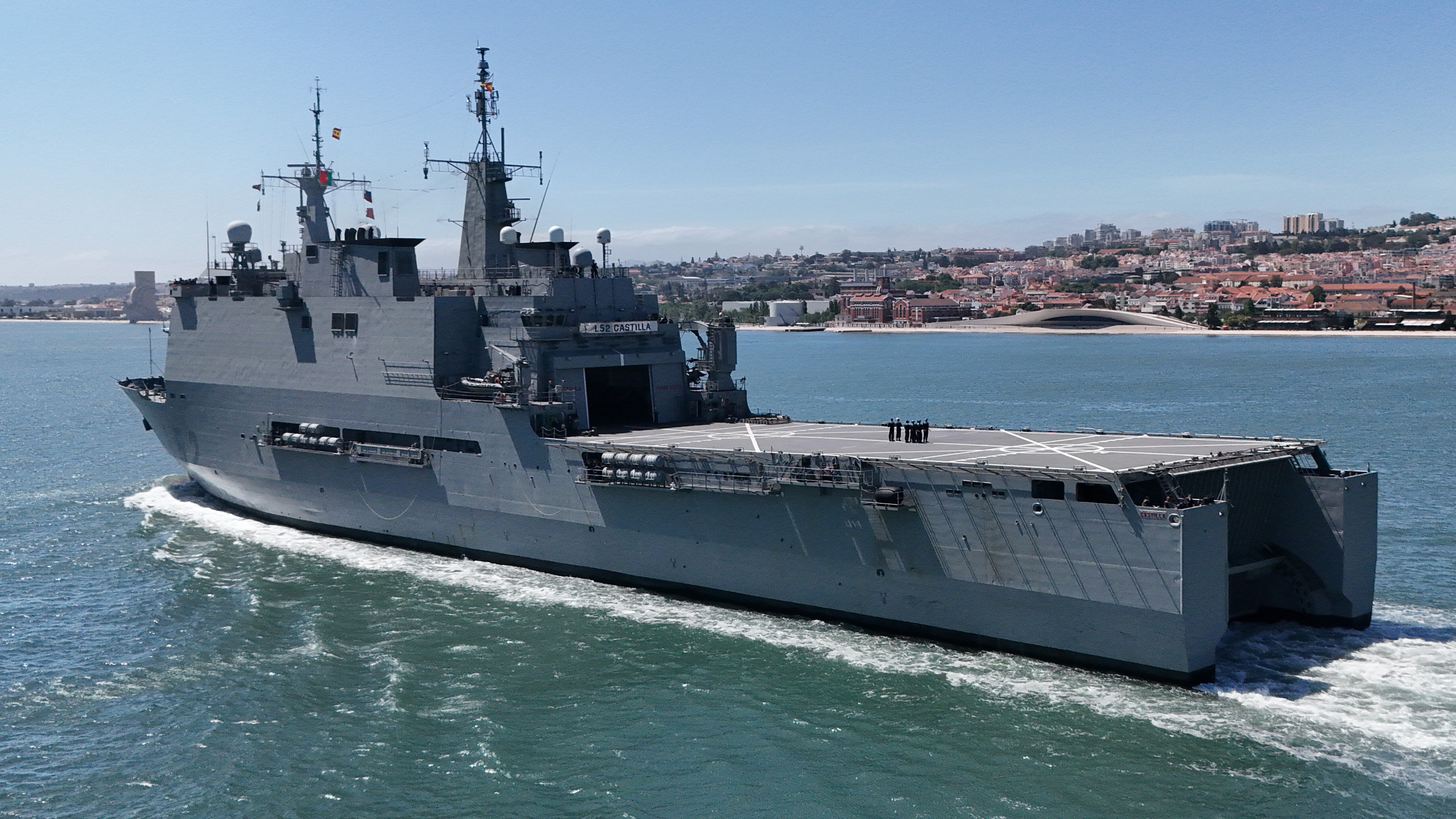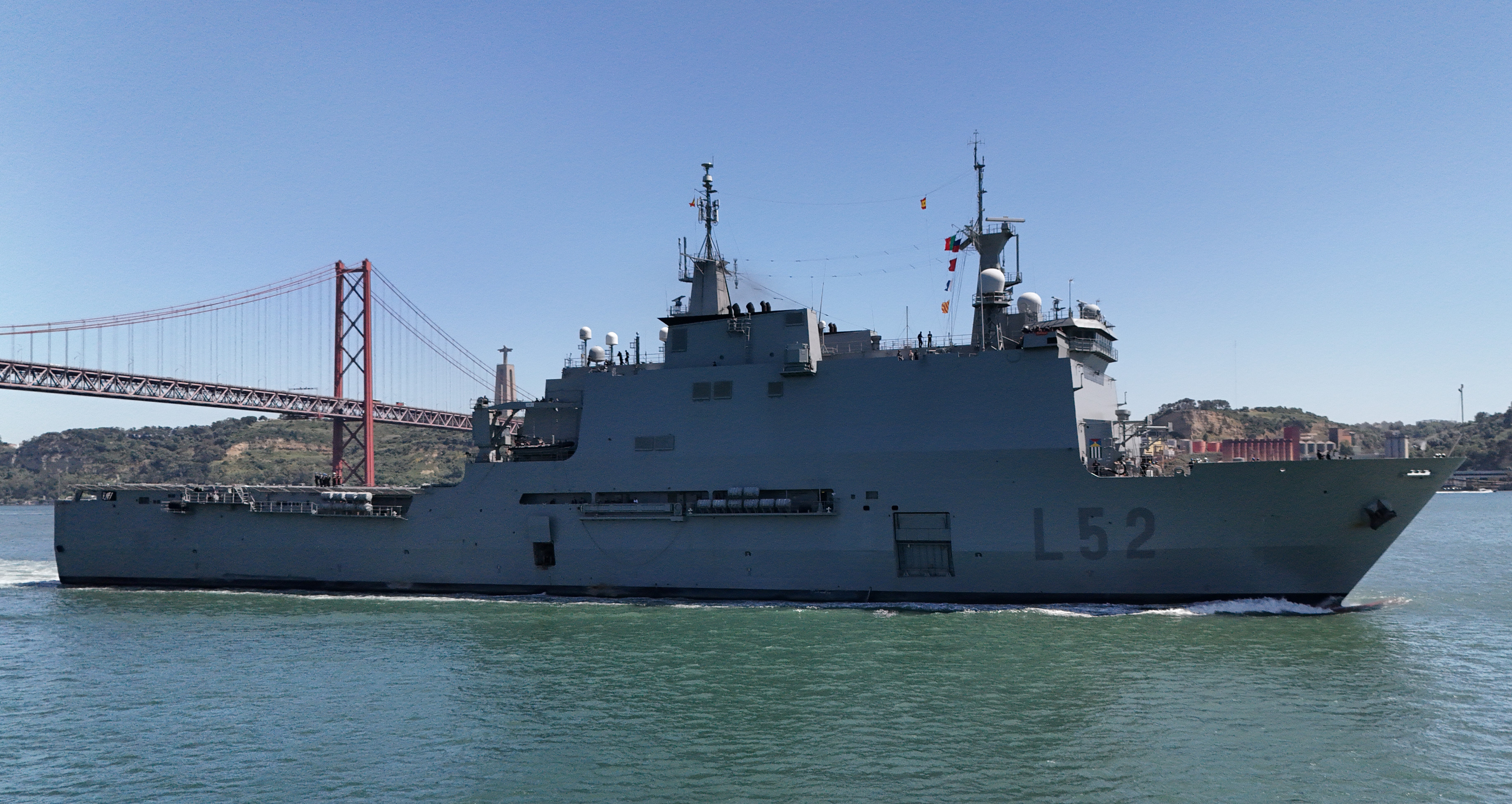 Comment: Designated by NATO as Command Ship for NATO operations, has advanced satellite communication equipment. It´s LPD capacity is reduced when compared with her sister ship L51 Galicia.