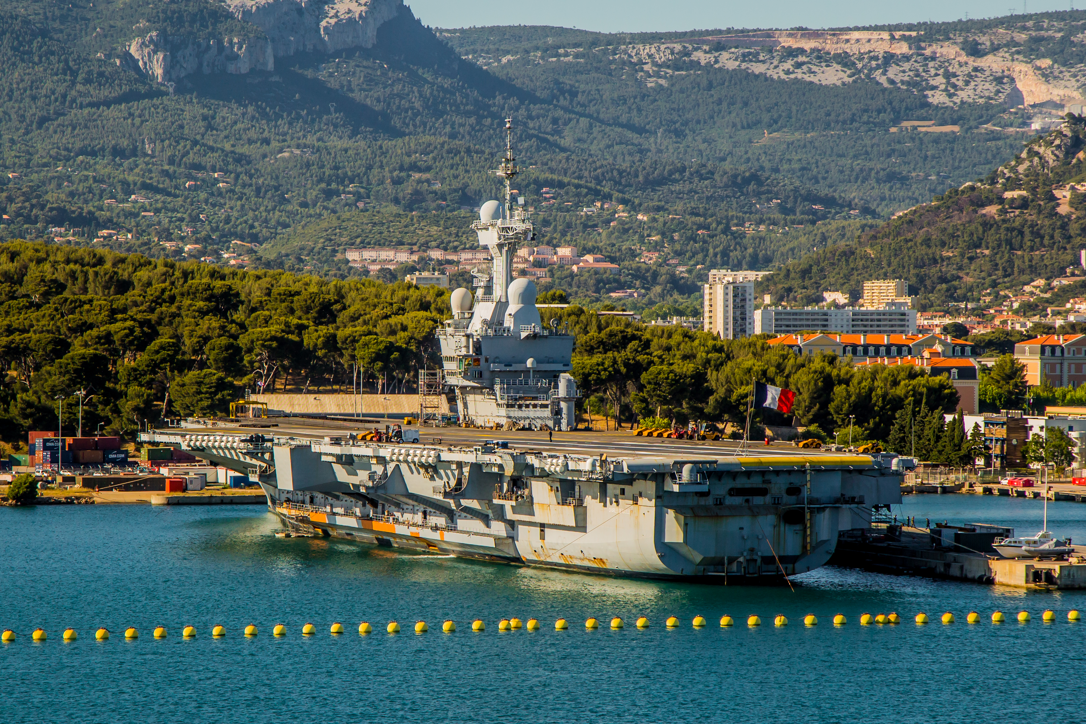 Comentario: Ordenada su construcción en Febrero de 1986. Se esperaba que entrase en servicio en 1996, pero un gran número de retrasos obligó a retrasar esa fecha hasta 1999. Durante sus pruebas de mar en 2000 perdió una hélice y tuvo que volver a Tolón para repararse, las cuales terminaron en enero de 2001, y en las que se sustituyó la pieza perdida por una del recientemente retirado Clemenceau ( lo cual supuso limitar su velocidad a 23 nudos ), mientras se esperaba montar una nueva en 2003 . El buque entró en servicio en 2001, en aquellos momentos embarcaba 4 x Rafale-M y 29 x Super Étendard, 2 x E-2C Hawkeye, 2 x Super Frelon y 2 x Dauphin. Se pretende embarcar 32 x cazas Rafale, 3 x E-2C Hawkeye, y 4 helicópteros.
