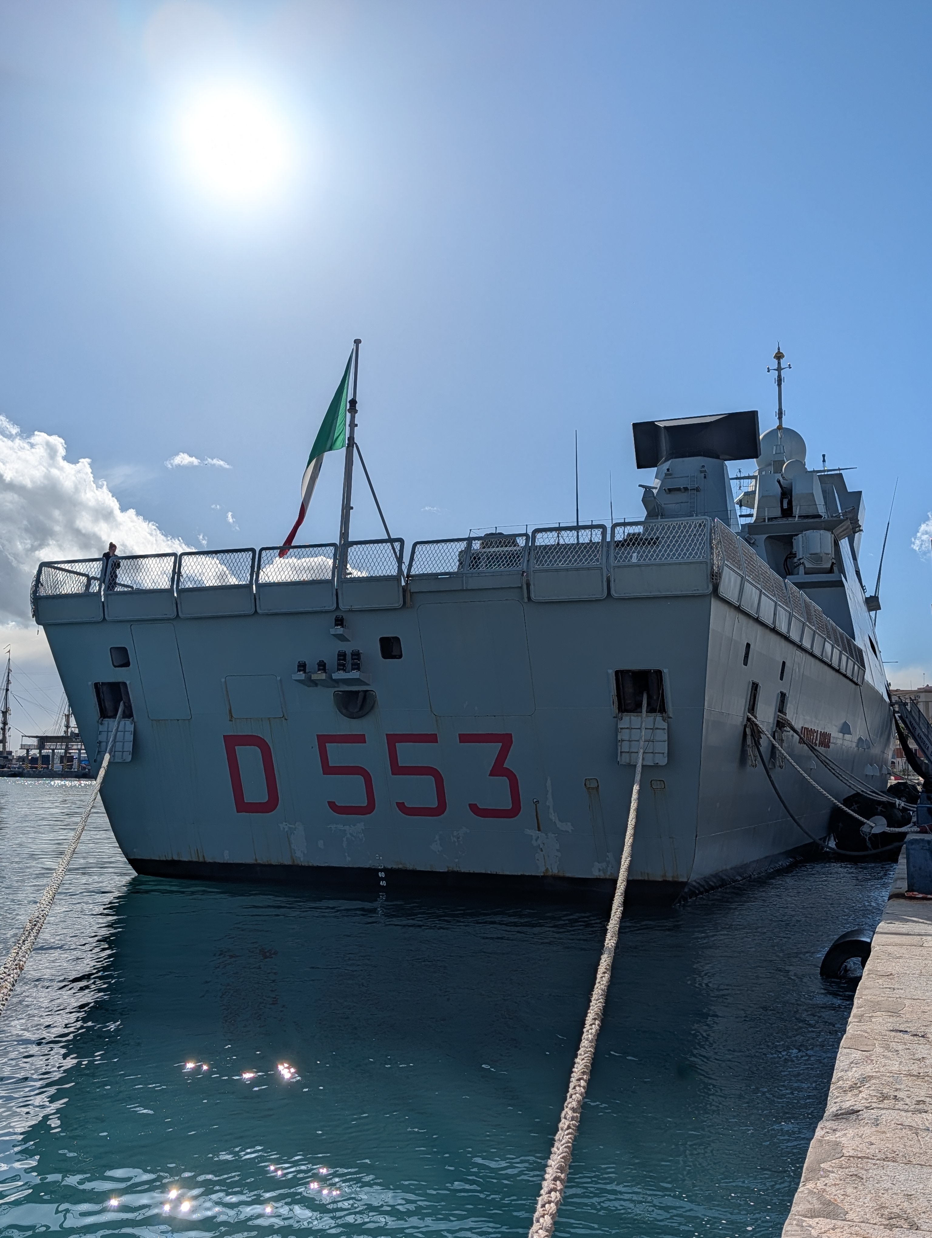 Misiles: SSM: 8 x Teseo/Otomat Mk2 Block IV ( 2 x lanzadores cuádruples ); SAM: sistema PAAMS, que incluye 48 x misiles Aster ( 32 x Aster 15 + 16 x Aster 30, lanzados desde lanzadores Sylver A50.
