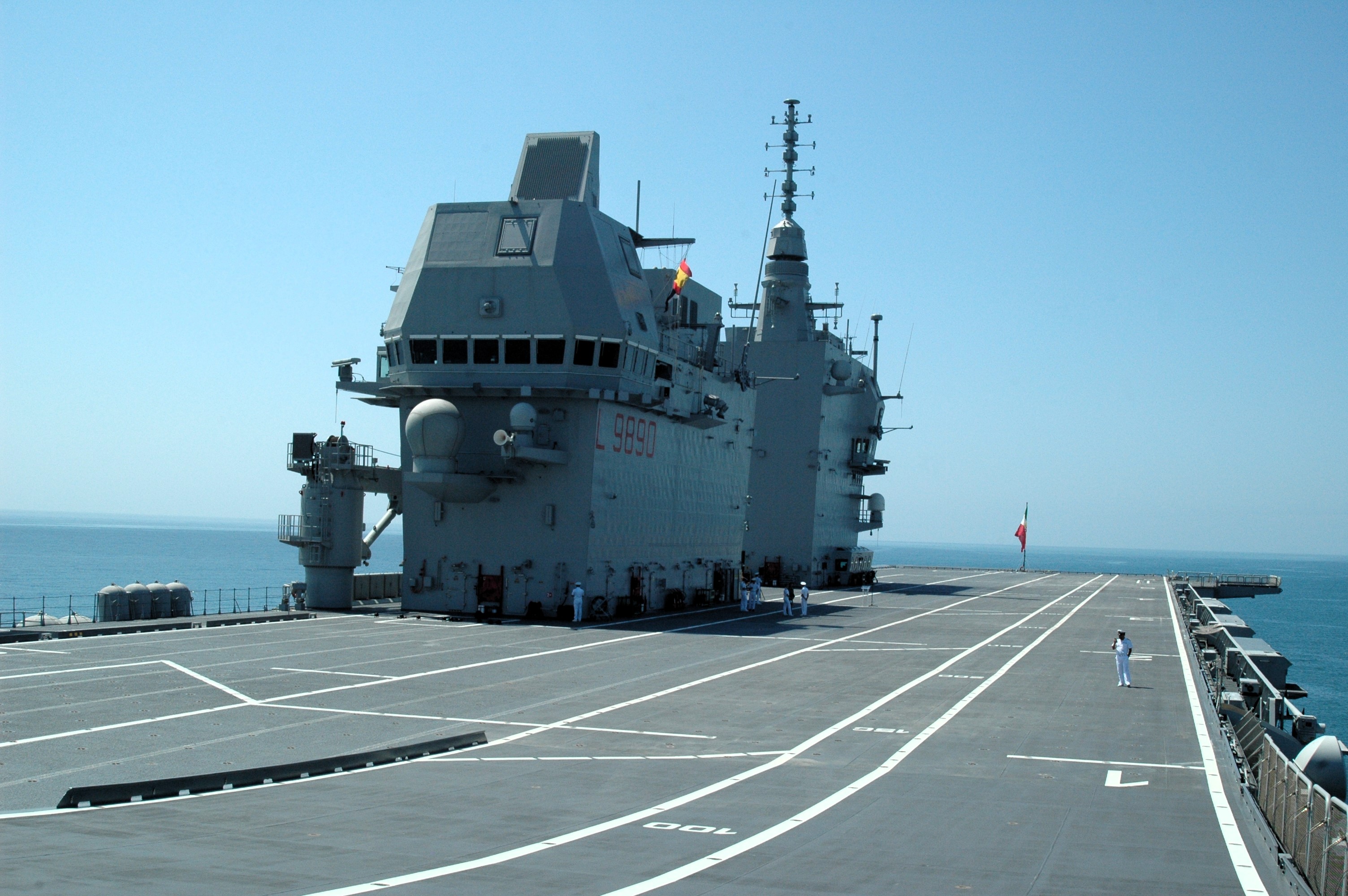 Comentario: El mayor buque construido para la marina italiana desde los acorazados clase Littorio de la SGM. Reemplaza al portaaviones Guiseppe Garibaldi, y debería actuar como segunda cubierta para operaciones aereas en caso de indisponibilidad del portaaviones Cavour. La cubierta de vuelo tiene unas dimensiones de 230m x 36m, con 9 tomas para aeronaves, y equipado con dos elevadores de 42tm y unas dimensiones de 15m x 15m. El buque posee un completo hospital tipo Role 2E de 700m2 y 28 camas.