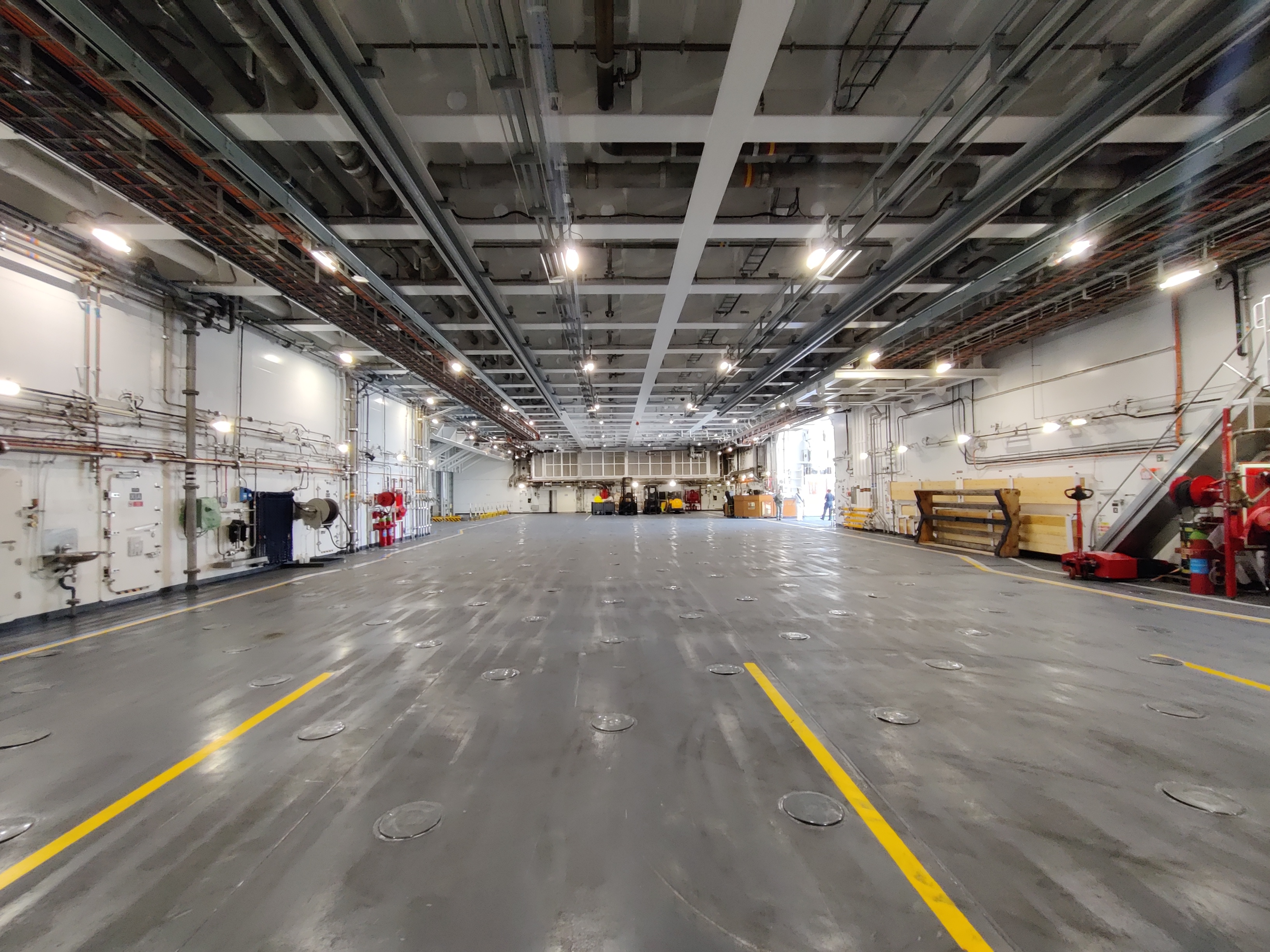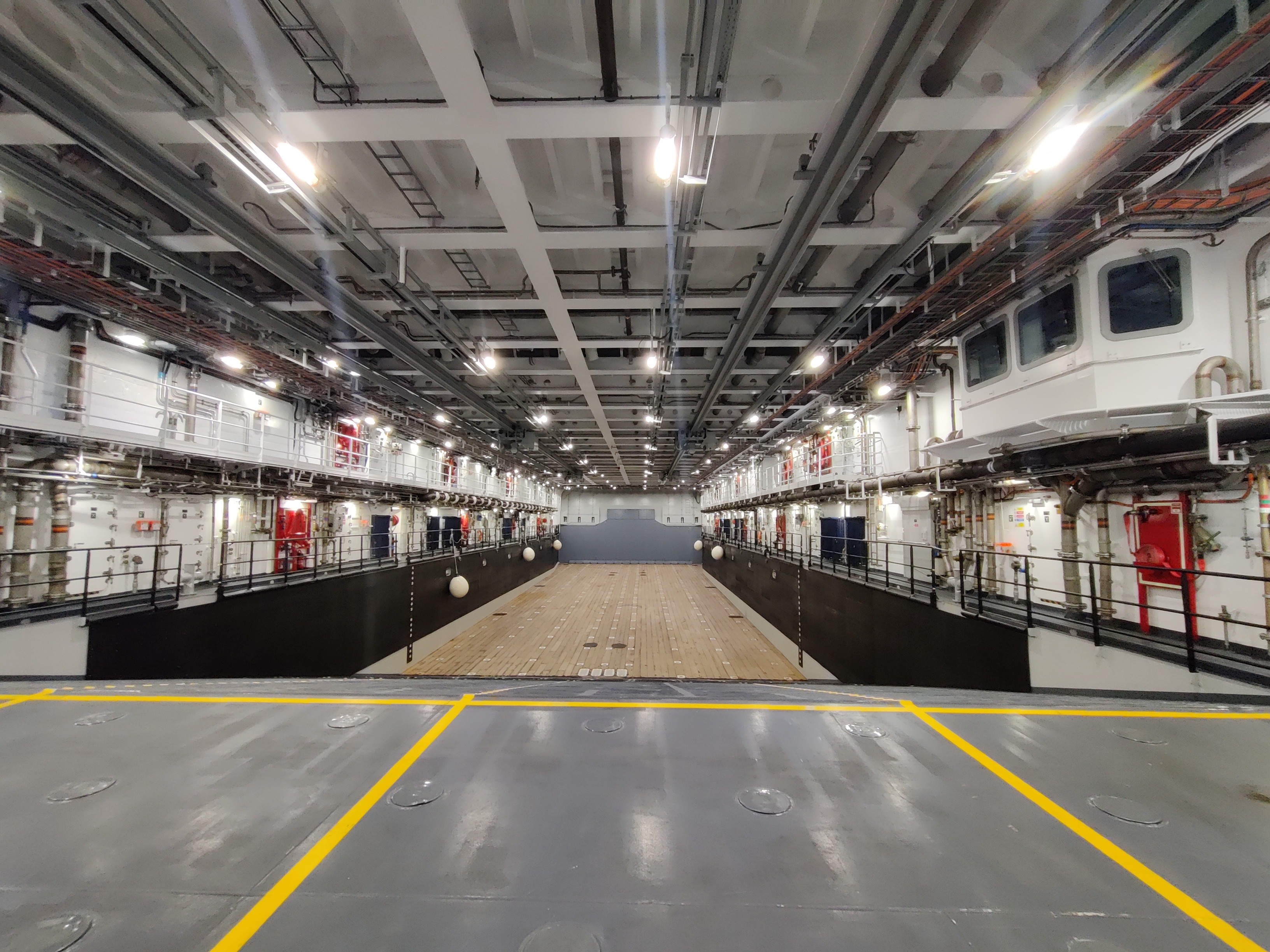 Capacidad de transporte: las dimensiones del dique son 50m x 15m, que posibilita alojar 4 x LCM o 2 x L-CAT o 1 x LCAC; las dimensiones del garage son 55m x 18m, lo que equivale a 253m lineales para vehículos o 700m2 para carga; En el hangar se dispone de 2.600m2, añadiendo otros 530m lineales para ser utilizados por vehículos.