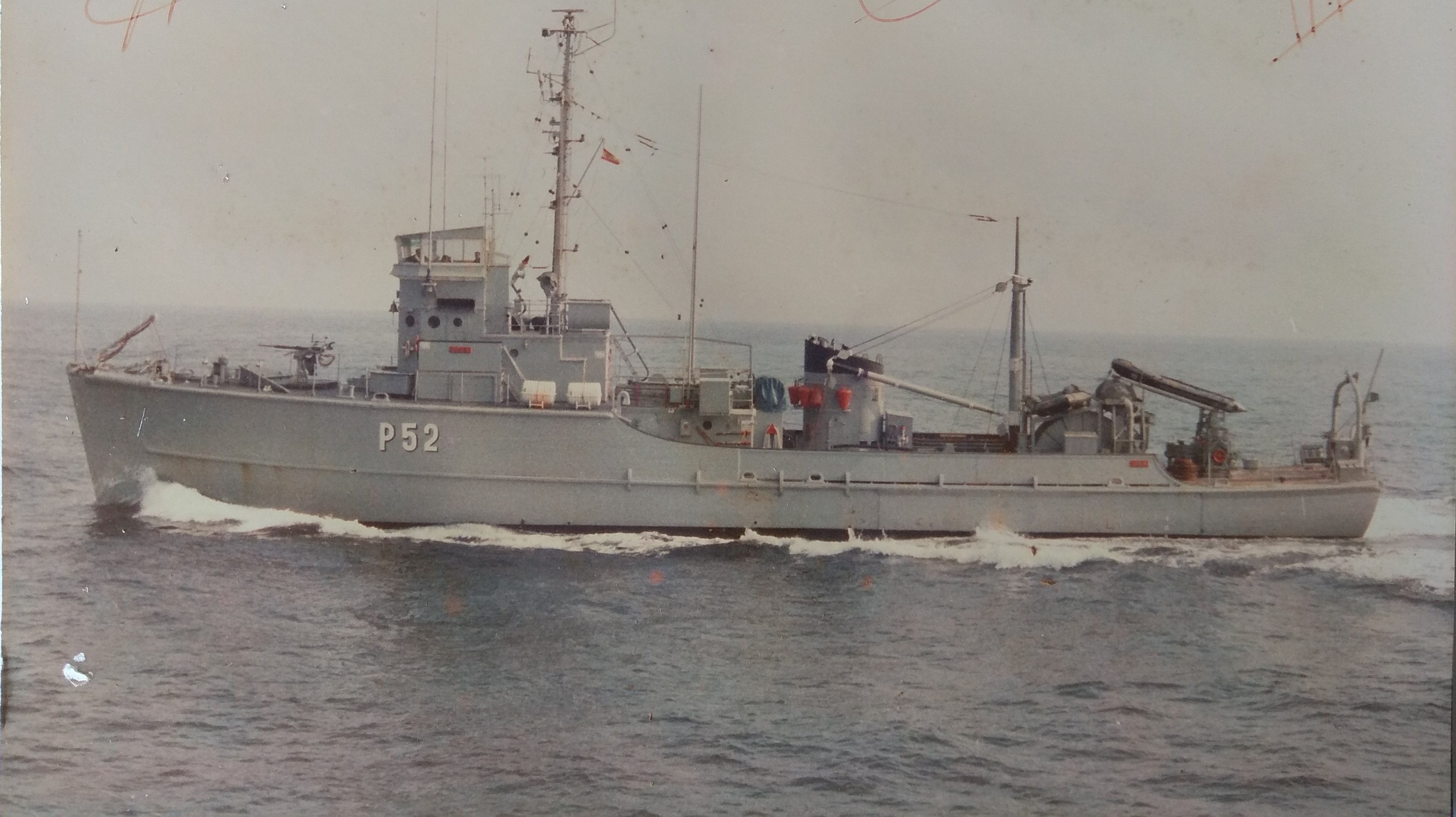 Comment: Laid down as AMS-265. Wooden hull. Originally numbered as M-24, later reclassified to patrol duties in 1980 an renamed PVZ-52. Renamed P-52 in 1986. Sunk as artificial reef at La Manga del Mar Menor 14th October 1999.