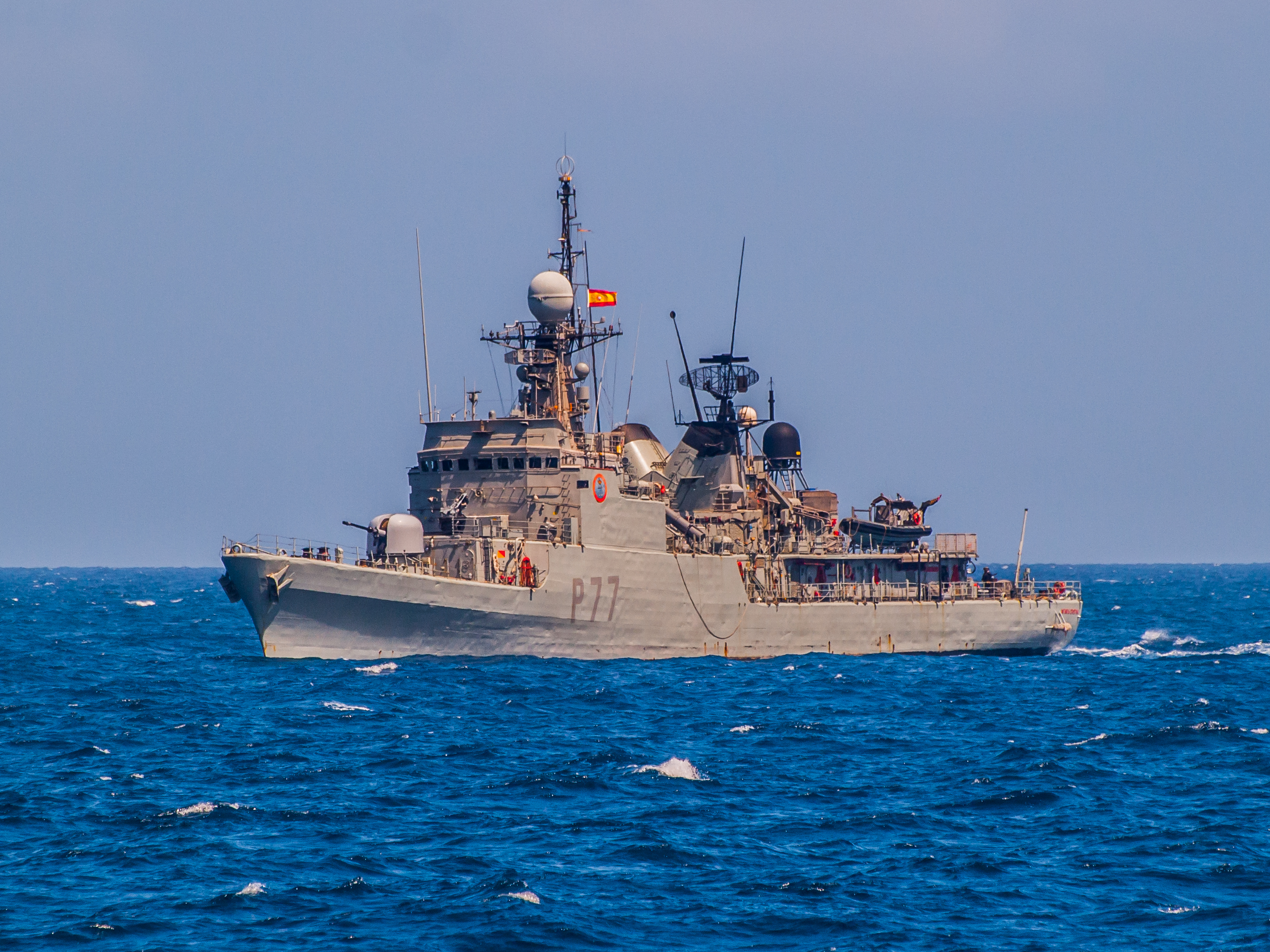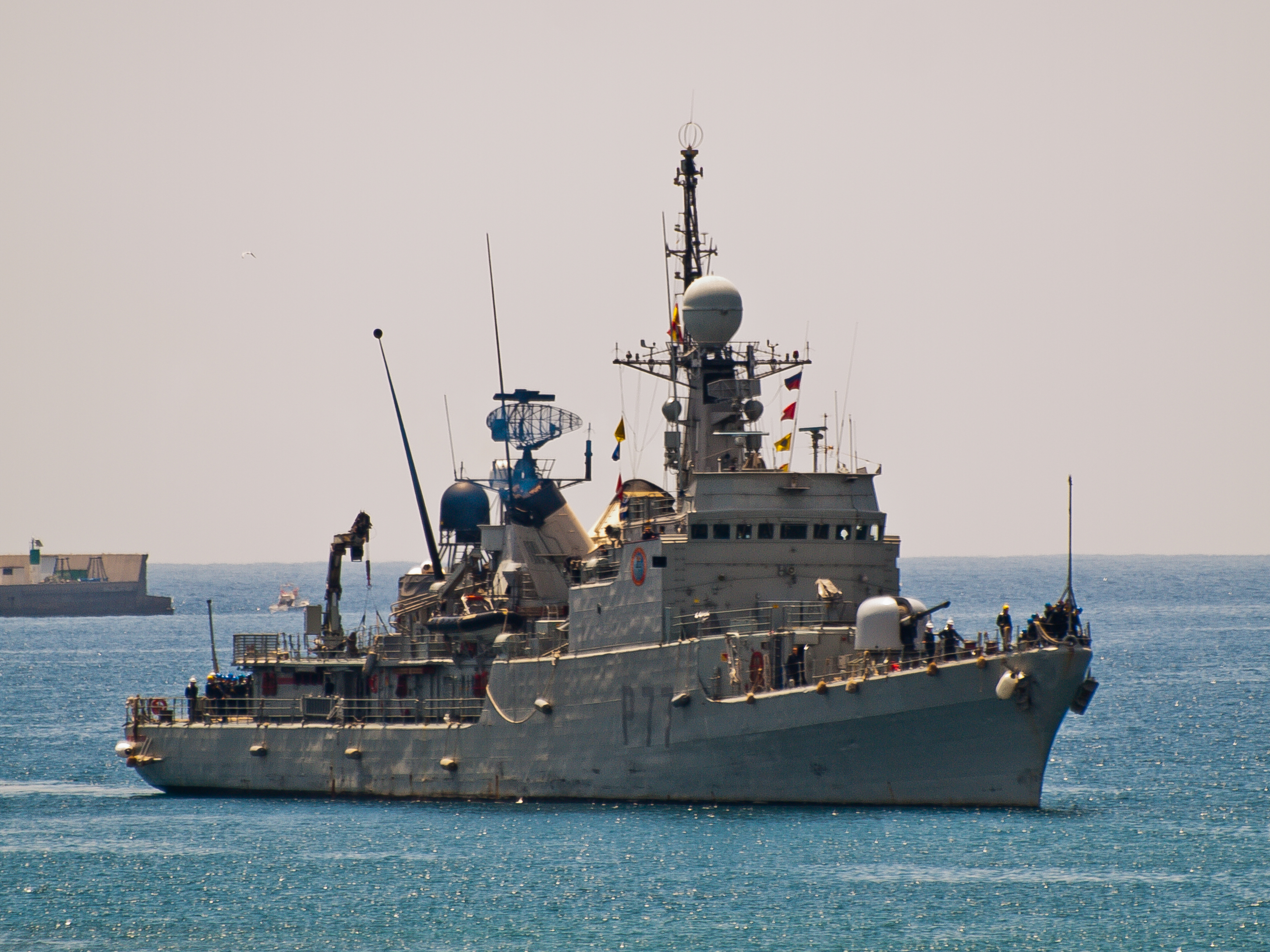Comment: Tritan IV combat sytem. Carries three RHIBs: 1 x Valiant 750, 2 x Zodiac Mk5. Former corvette F34 Infanta Cristina, converted to patrol duties. Renumbered to P77 on 13th January 2004.