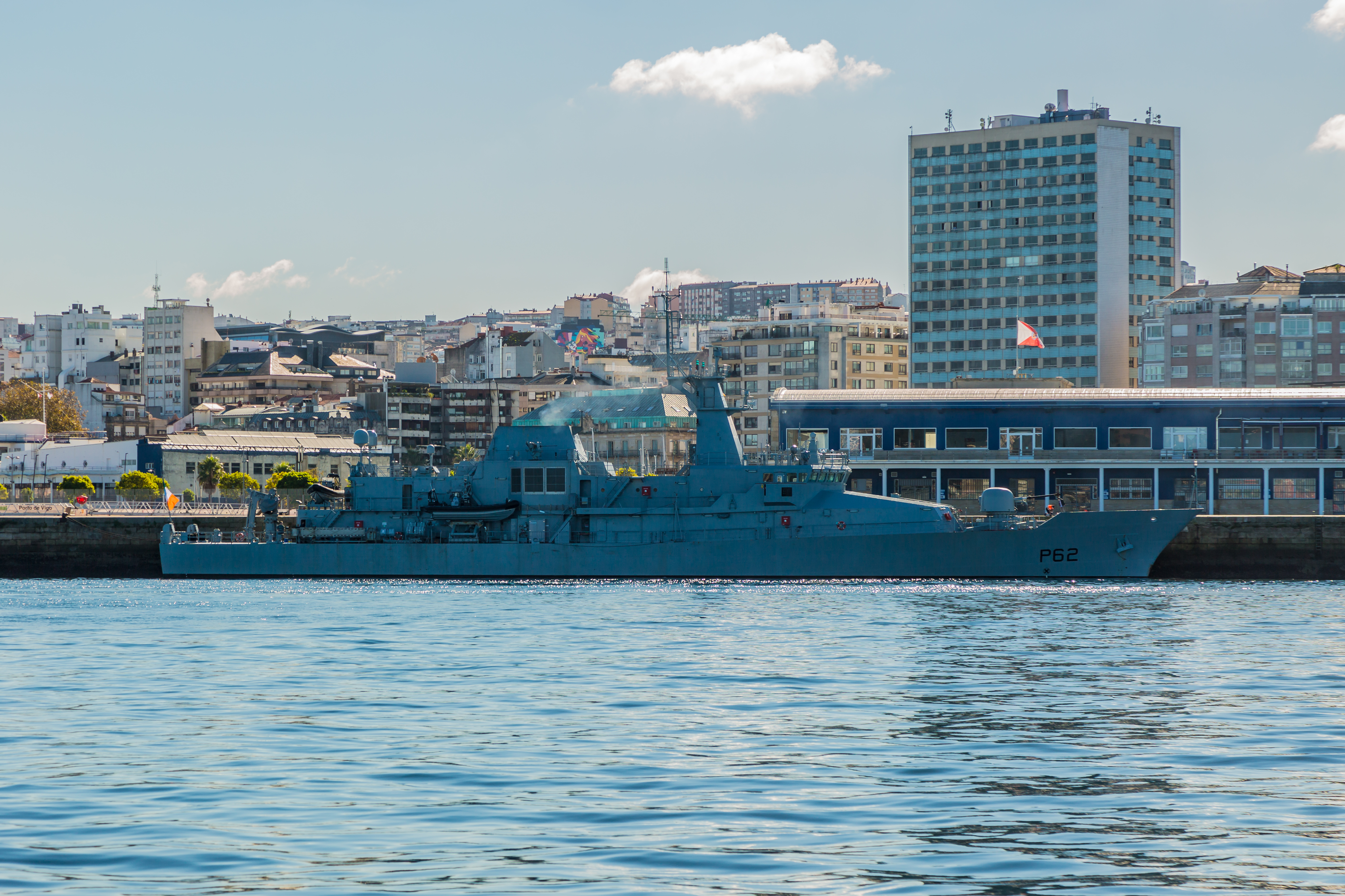 Cañones: 1 x 76mm OTO Melara, 2 x 20mm Rheinmetall, 2 x 12,7mm Browning, 4 x 7,62mm.