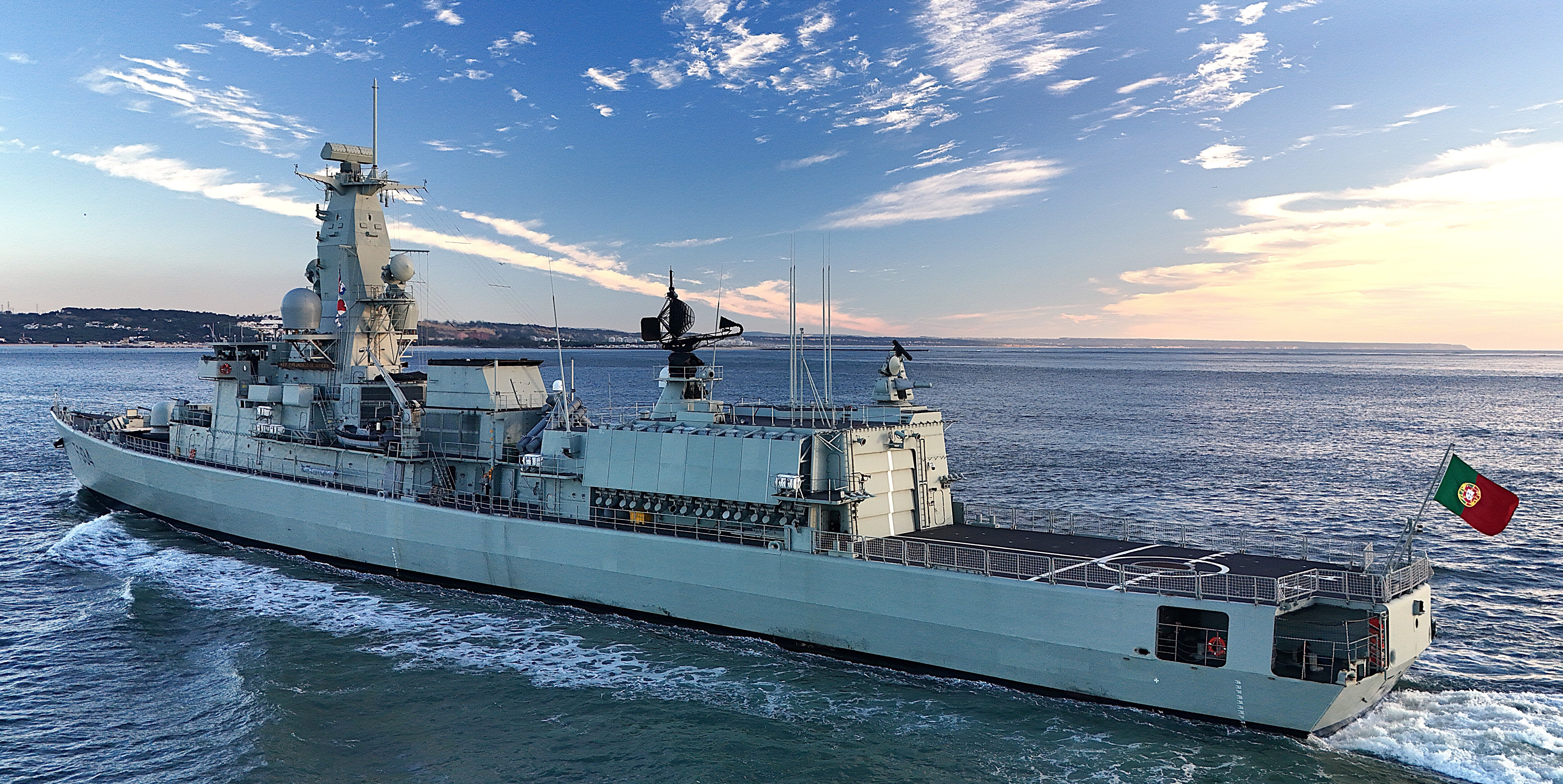 Misiles: SSM: 8 x McDonnell Douglas Harpoon ( 2 cuádruples ); SAM: 16 x Raytheon Sea Sparrow, desde lanzadores verticales Mk48.